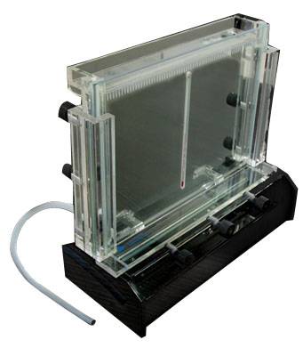 1、高透明度聚碳酸脂材料,模具注塑一次成型。 2、配有專用制膠器、制膠、上樣操作簡單,不漏膠、漏液。 3、玻璃面積:100×100(mm)