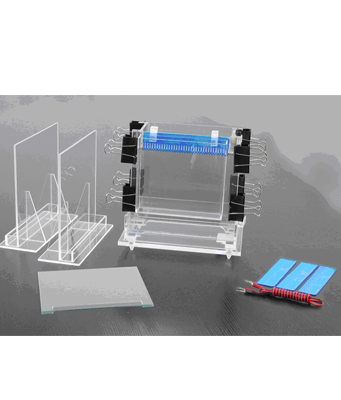 雙垂直電泳槽特別適宜作種子純度檢測或樣品量較多的電泳。配1厚的54齒長城齒梳子?赏瑫r做108個樣品。