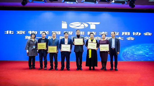 圖:托普云農(nóng)副總經(jīng)理(左三)帶公司領(lǐng)取北京物聯(lián)網(wǎng)智能技術(shù)應(yīng)用大會(huì)會(huì)員證書