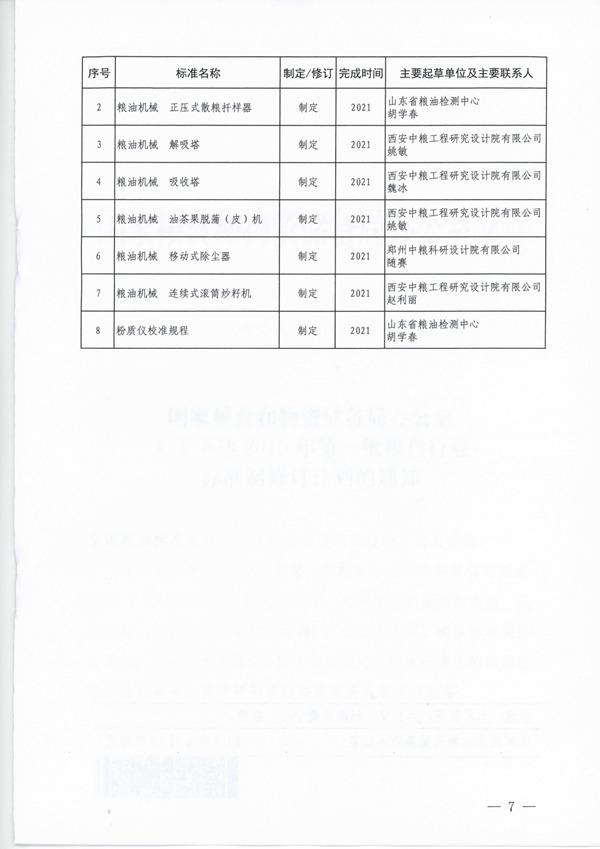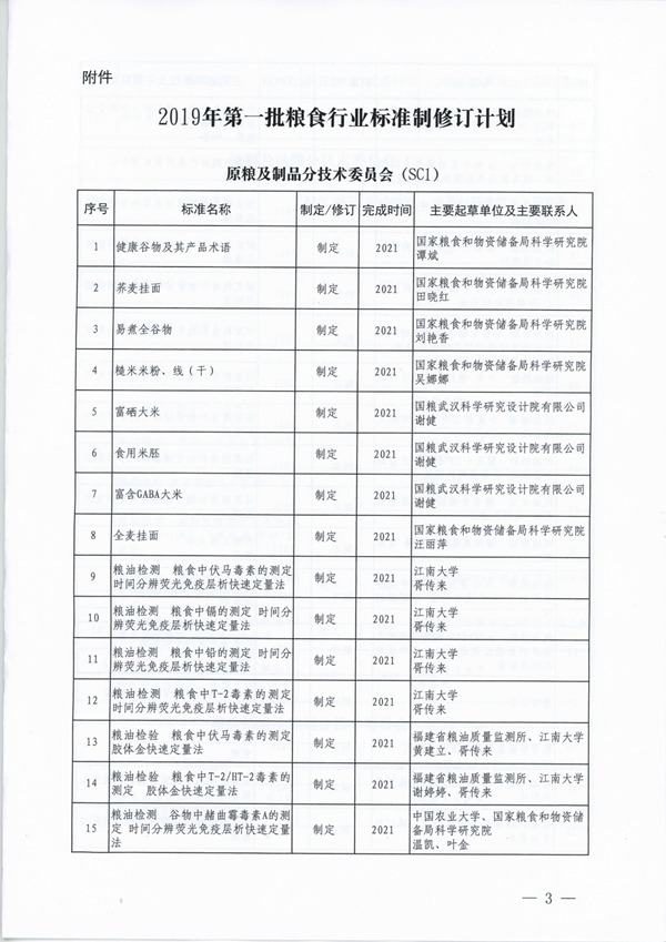 2019年第一批糧食行業(yè)標(biāo)準(zhǔn)制修訂計(jì)劃