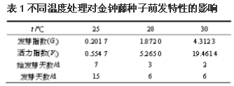 一、不同溫度處理對金鐘藤種子萌發(fā)特性的影響