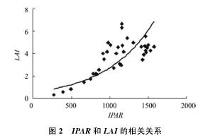 通過光合有效輻射計的研究分析并結(jié)合表1,我們可以從中得知,不同播期和播量對小麥冠層截獲光合有效輻射量有著較大的影響。從小麥整個生育期來看,隨著播期的推遲,光合有效輻射量呈減小趨勢。而光合有效輻射量與葉面積指數(shù)呈相同的變化趨勢,即葉面積指數(shù)大的小麥群體,有利于冠層截獲光合有效輻射。圖2是不同播期小麥各生育期的光合有效輻射量與葉面積指數(shù)相關(guān)關(guān)系圖(n=36),可以看出光合有效輻射量和葉面積指數(shù)呈指數(shù)正相關(guān)。