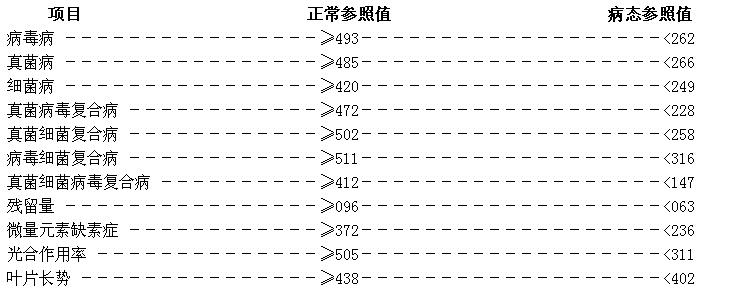 首先,打開電源,儀器會(huì)進(jìn)入自檢狀態(tài),檢測(cè)槽緩慢移出,等待測(cè)試;接著我們要把截取植物的根、莖、葉剪碎后放置于塑料碗中,數(shù)量大約可以控制在塑料碗容積的三分之一至五分之一;然后用滴管分別吸取等量的五種指示液,滴入盛有植物的塑料碗中,均勻攪拌,放置二到三分鐘等待檢測(cè);用清水沖洗滴管后吸取指示劑和植物碎片的少許混合液,均勻地涂抹在指示條上,將指示條放入測(cè)試槽中,并將彩條塊朝上;最后只需輕輕按動(dòng)“測(cè)試”鍵,聽到“嘟”一聲后,植物病害快速診斷儀開始檢測(cè),測(cè)試槽和指示條緩慢移至儀器中,儀器還會(huì)自動(dòng)打印檢測(cè)結(jié)果。測(cè)試結(jié)果我們可以參照下面的進(jìn)行分析用藥: